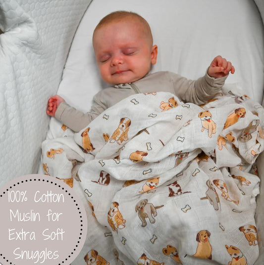 LollyBanks Woof Woof Baby Muslin Swaddle Blanket