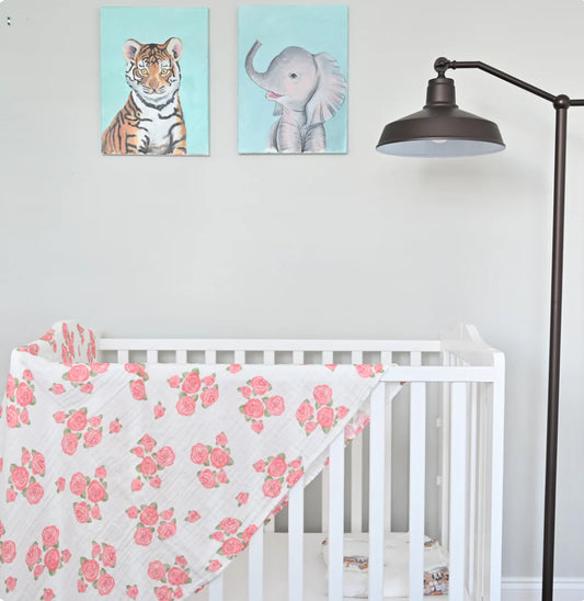 LollyBanks Rose Blooming Elegance Baby Muslin Swaddle Blanket