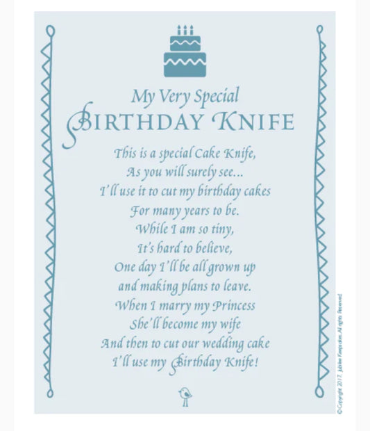 Jubilee Keepsakes Boy Birthday Knife-Blue Seersucker with White Ribbon