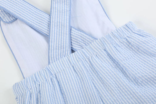 Lil Cactus Blue Seersucker Easter Bunny Shortalls
