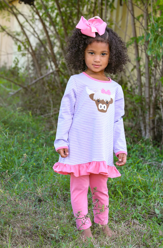 Trotter Street Kids Highland Cow Ruffle Pants Set