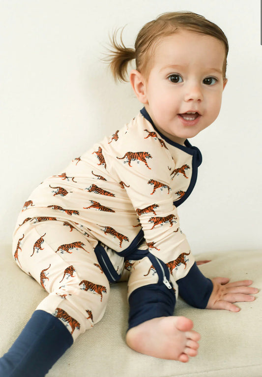 Southern Slumber Navy Tiger Double Zipper Bamboo Sleeper