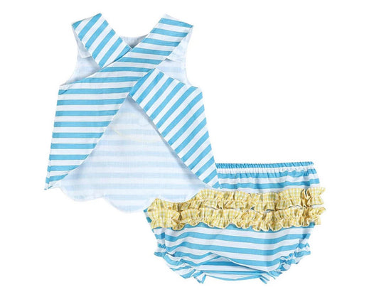 Lil Cactus Blue Stripe Fish Applique Top & Bloomers (2T)