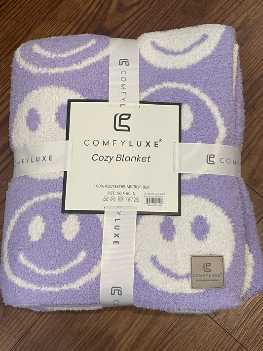 Comfy Luxe Cozy Blanket-Lavender Smiley