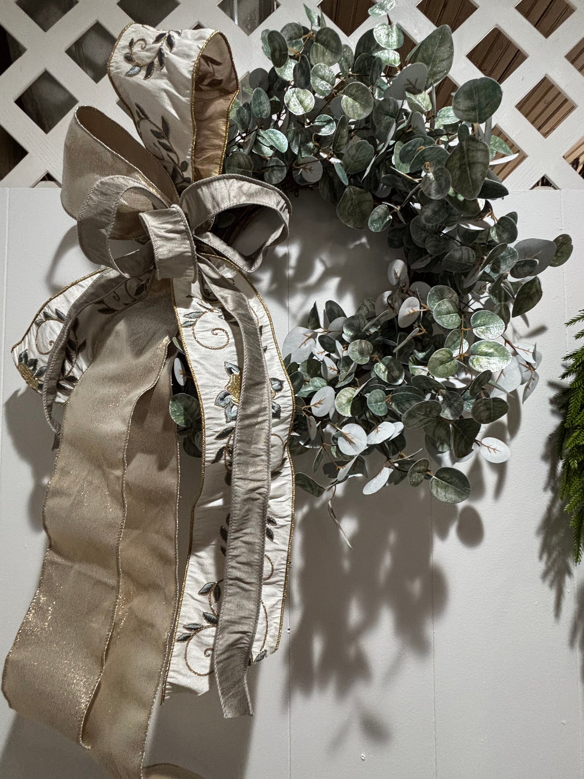 Glittered Eucalyptus Wreath With Elegant Bow