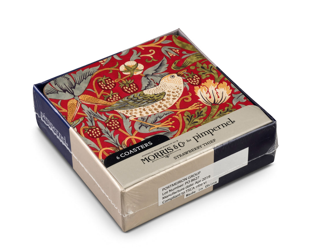 Morris & Co. Strawberry Thief Red Coasters-Set of 6