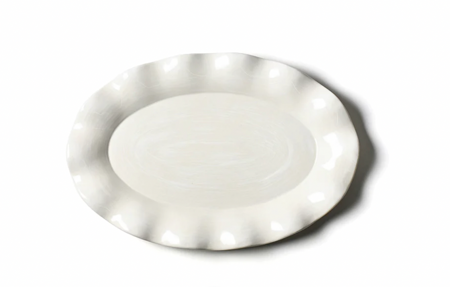 This beautiful platter features a classic Signature White style and with hand-painted brushstrokes and a ruffled edge.